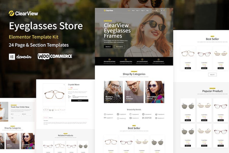 ClearView – Eyeglasses & Eyewear Store WooCommerce Elementor Template Kit